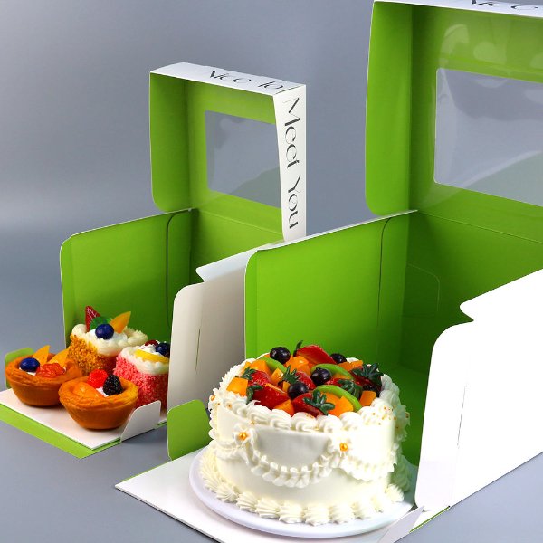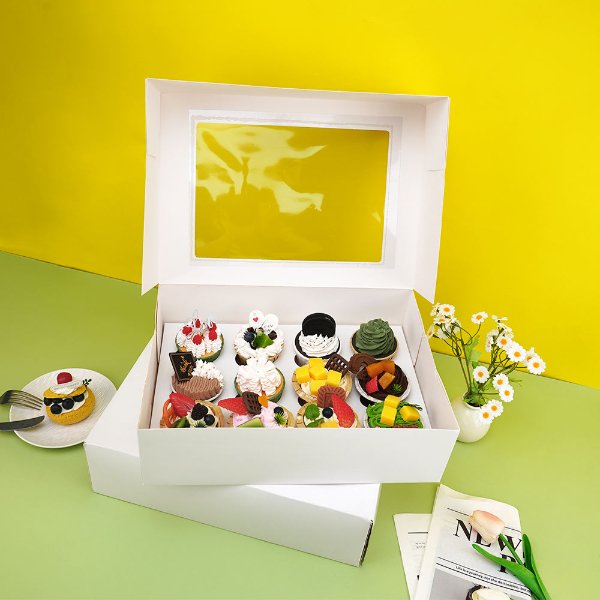 Both white cardstock and PET materials comply with food contact standards, ensuring safe and hygienic pastry packaging.