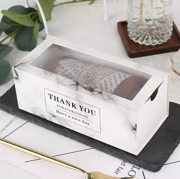 Both white cardstock and PET materials comply with food contact standards, ensuring safe and hygienic pastry packaging.