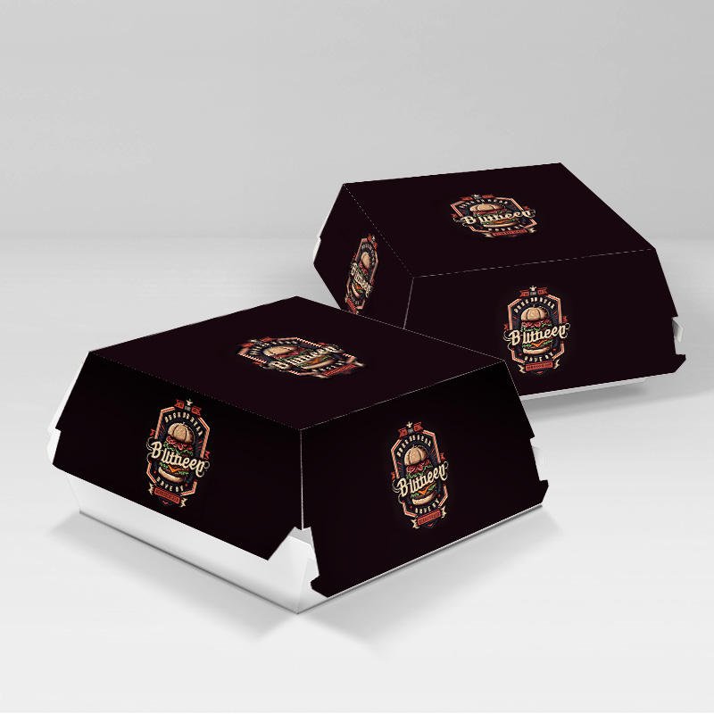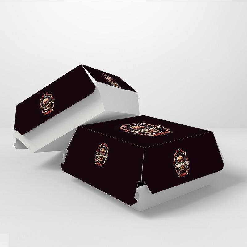 Custom Fast Food Packaging New Design Hamburger Box Coated Paper Burger Box with Embossing Fast Easy Corrugated Packaging