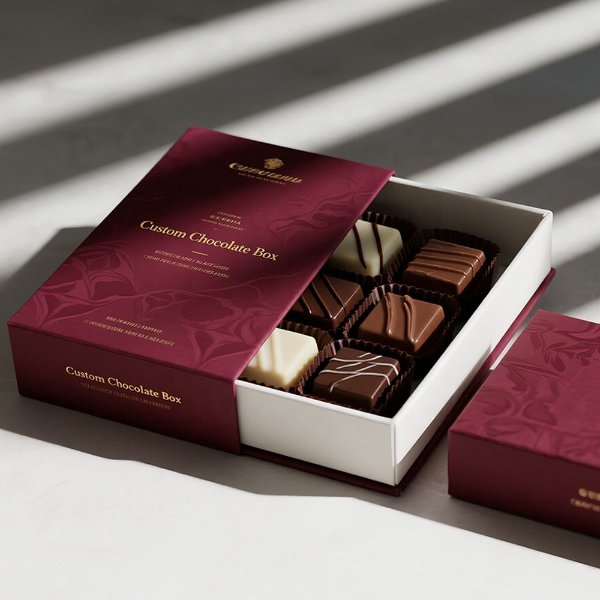 Custom Luxury Waterproof Chocolate Gift Box with Sponge Lining and Matt Lamination Burgundy Candy Magnetic Closure Packaging