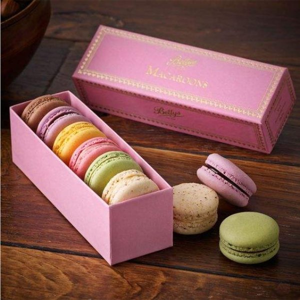 Custom Printed Macaron Luxury Gift Packaging with Plastic Tray Clear Window Gold Stamping Box with Lining for Sweet