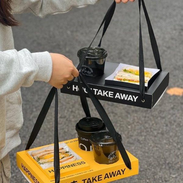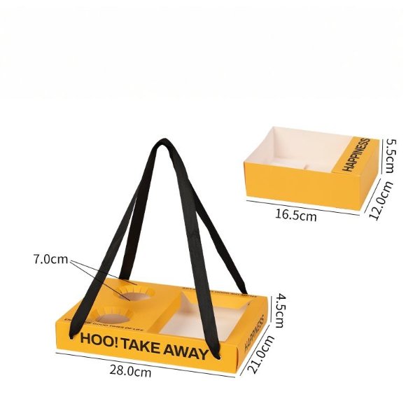 Customized Sandwich Cake Toast Cafe Beverage Cup Embedded Hand-Held Paper Tray Box for Coffee Shop