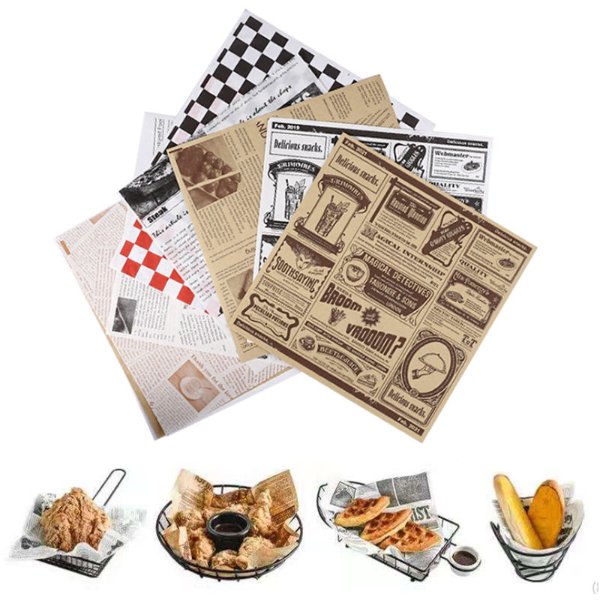 Oil-proof Pad Paper Wholesale Custom Printed Logo Size Food Safe Grade Burger Paper Greaseproof Meat Wrapping Wax Coated Paper