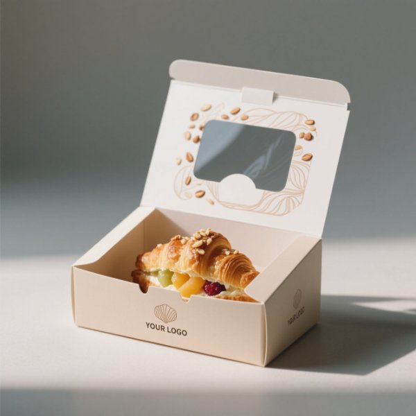 Personalized Cheap Foldable Croissant Paper Box Packaging Food Materials Chiffon Cake Tarts Bread Buns Boxes with Clear Window