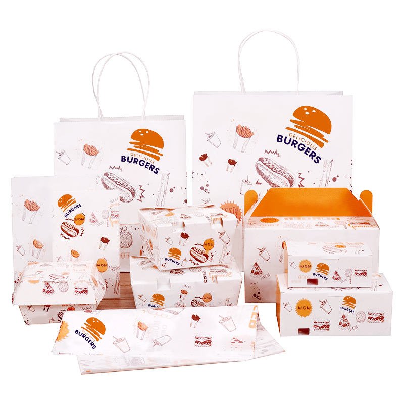 Wholesale Custom Design Disposable Paper Cardboard Snack Burger Boxes Fast Food Takeout Packaging