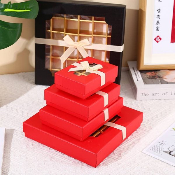 Wholesale Food Grade Biodegradable Rigid Boxes with Transparent Lid Luxury Packaging for Square Chocolate