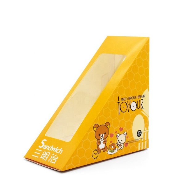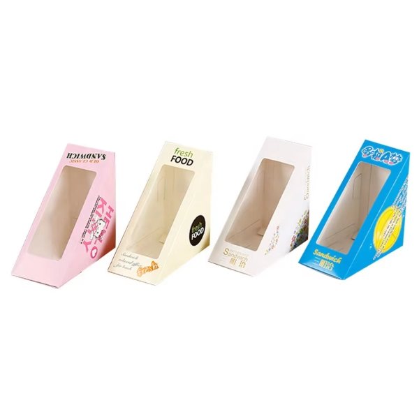 Wholesale Takeaway Fast Food Packing Sandwich Box Custom Printed Kraft Paper Triangle Sandwich Packaging